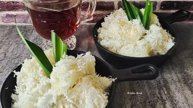 2. Kukus singkong, kelapa parutdan daun pandan hingga singkong empuk.