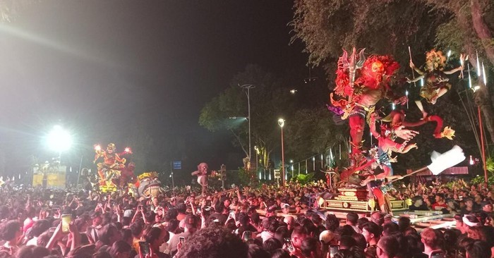 Berdasarkan pantauan detikBali, lebih dari 50 ogoh-ogoh diarak melintasi bundaran tersebut. Sebagian besar ogoh-ogoh datang dari arah Jalan Veteran dan Jalan Gajah Mada, lalu bergerak menuju Jalan Udayana dan Jalan Surapati.