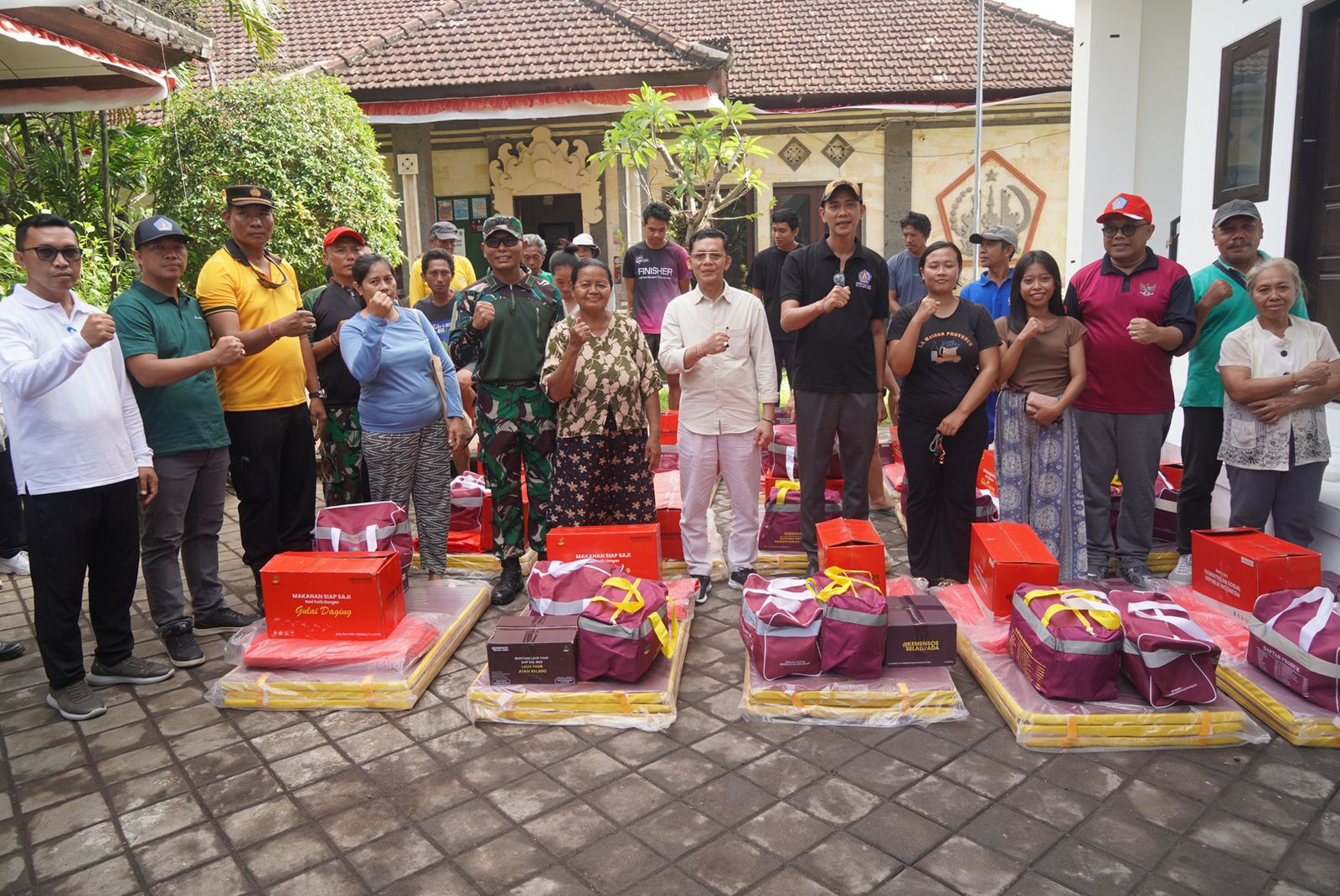 Bantuan yang diserahkan terdiri dari sembako, peralatan dapur, kasur, terpal, selimut, dan makanan siap saji yang disiapkan oleh Dinas Sosial Pemberdayaan Perempuan dan Perlindungan Anak Kabupaten Klungkung. Selain itu, Institut Teknologi dan Pendidikan Markandeya Bali juga turut memberikan dukungan berupa tambahan paket sembako.