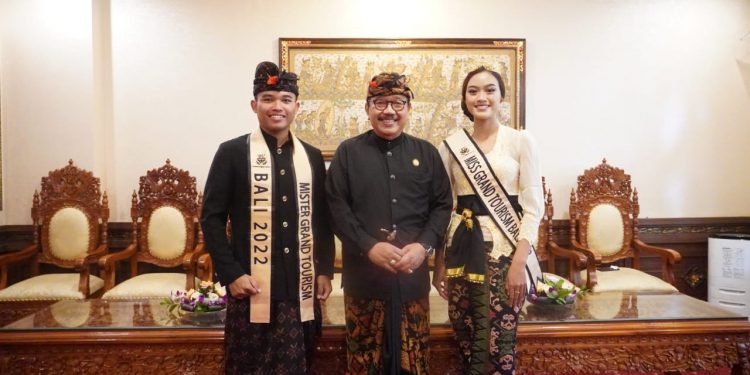 BALIPUSTAKANEWS, DENPASAR – Wakil Gubernur Bali, Tjok Oka Sukawati menerima audiensi Mr and Miss Grand Tourism Bali 2022, I Gede Santika Yasa dan Ketut Kamisa Gutami bertempat di Ruang Tamu Wakil Gubernur Bali (16/2).