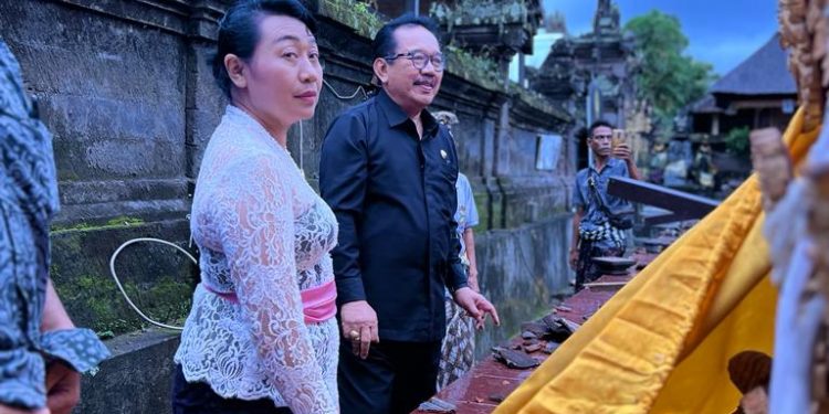 BALIPUSTAKANEWS, GIANYAR – Wakil Gubernur Bali Prof. Tjok Oka Sukawati sangat prihatin terhadap cuaca ekstrem terutama angin kencang yang terjadi sore hari tadi. Angin kencang yang melanda sebagian besar wilayah pulau Bali dan terjadi sekitar dua (2) jam ini, mengakibatkan patahnya ranting sejumlah pohon besar, terutama yang ada disepanjang jalan raya. Selain itu, angin kencang ini menimbulkan robohnya balai pesandekan di Pura Kawitan Dalem Sukawati.