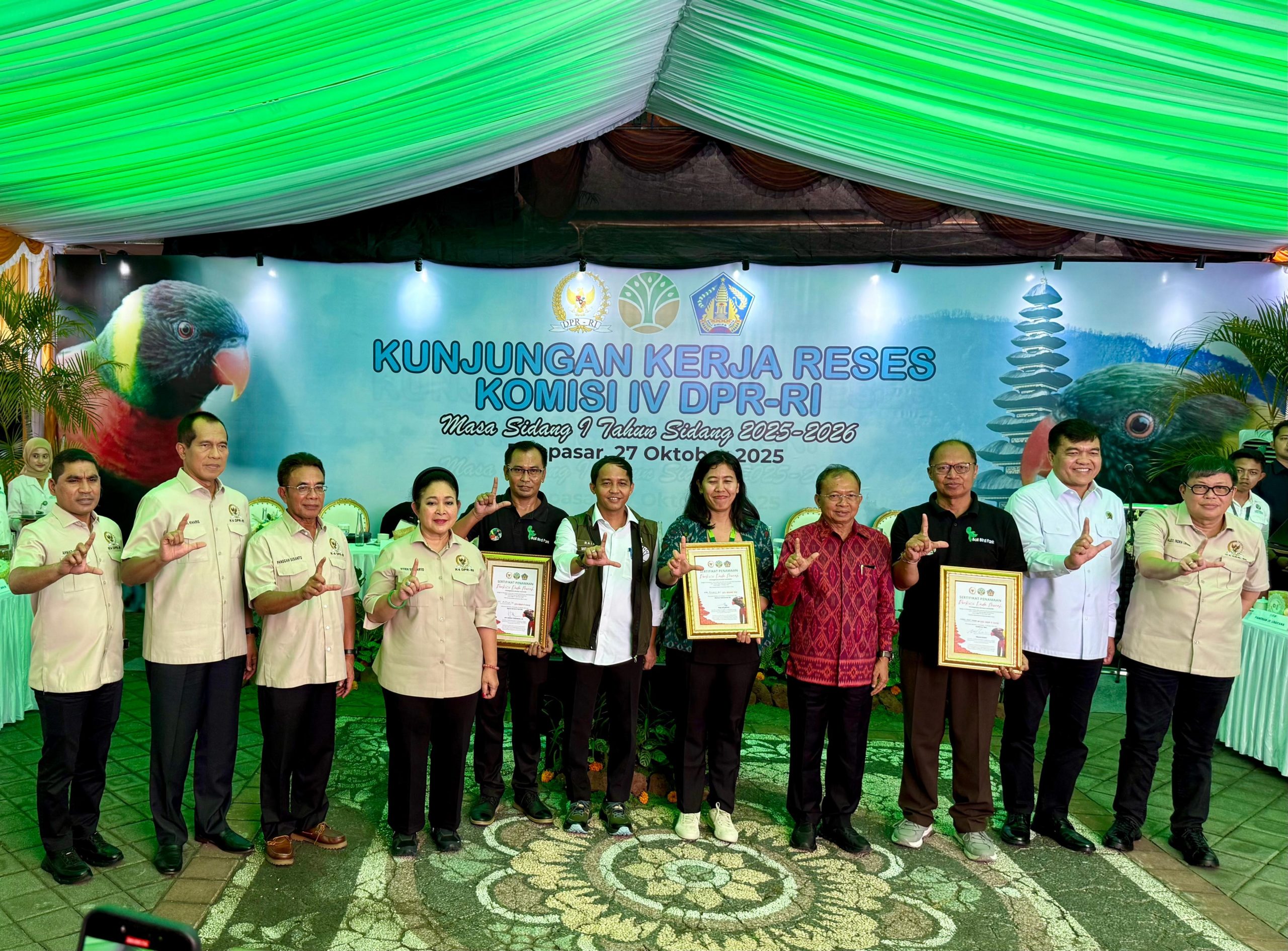 Kegiatan ditutup dengan penandatanganan sertifikat dan pemberian nama anakan burung perkici berdada merah oleh Ketua Komisi IV DPR RI, Menteri Kehutanan, dan Gubernur Bali. (*/pr)