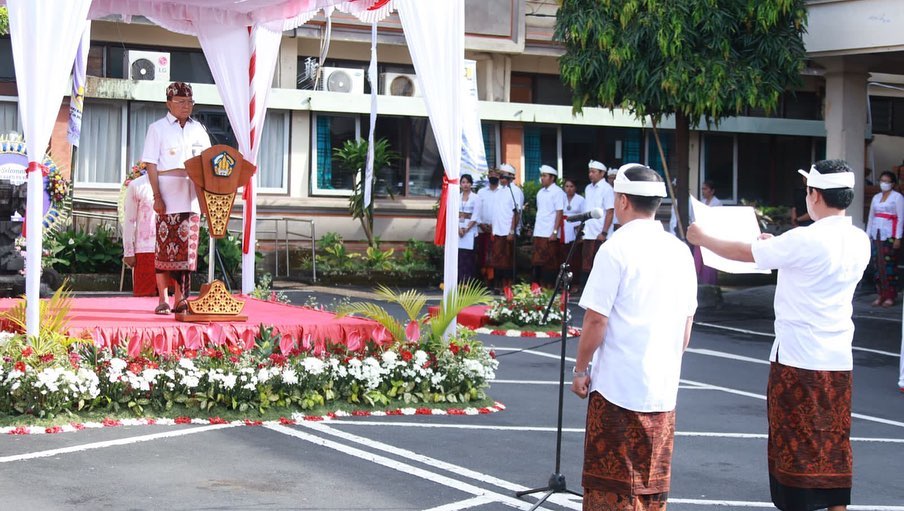 BALIPUSTAKANEWS, DENPASAR – Gubernur Bali, Wayan Koster hadir menjadi Inspektur Upacara dalam Upacara Peringatan Hari Bakti Pekerjaan Umum dan Perumahan Rakyat (PUPR) ke-77 dengan tema, “77 Tahun Bakti PUPR Sigap Membangun Negeri” yang dilaksanakan pada Sabtu, 03 Desember 2022 pagi di Kantor Dinas Pekerjaan Umum, Penataan Ruang, Perumahan dan Kawasan Permukiman Provinsi Bali, Denpasar.