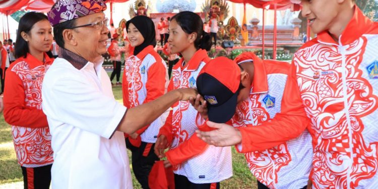 BALIPUSTAKANEWS, DENPASAR – Gubernur Bali, Wayan Koster melepas 215 Kontingen Provinsi Bali menuju Pekan Olahraga Pelajar Nasional (POPNAS) Tahun 2023 di Jaya Sabha, Denpasar pada, Kamis (Wraspati Paing, Medangsia), 24 Agustus 2023.