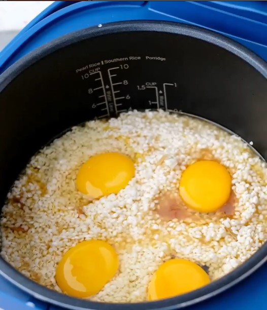 Melalui akun instagram hungryfever, panduan membuat nasi telur rice cooker. Nasi telur ini diolah dengan berbagai bumbu sehingga rasanya lebih mirip dengan nasi goreng.