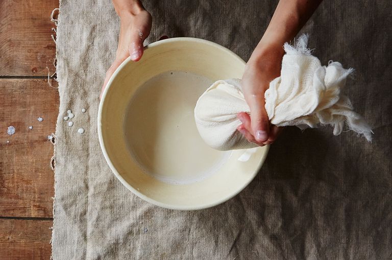 Cuci bersih kacang kedelai lalu rendam dengan air selama kurang lebih 8 jam. Setelah itu, cuci bersih kacang dan buang kulitnya. Selanjutnya, haluskan kacang dengan menggunakan blender.