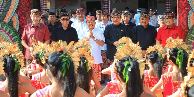 BALIPUSTAKANEWS, DENPASAR – Kepemimpinan Gubernur Bali, Wayan Koster bersama Wakil Gubernur Bali, Tjokorda Oka Artha Ardana Sukawati dalam mengimplementasikan visi Nangun Sat Kerthi Loka Bali melalui Pola Pembangunan Semesta Berencana menuju Bali Era Baru yang dituangkan ke dalam 44 Tonggak Peradaban Penanda Bali Era Baru diapresiasi oleh Walikota Denpasar dan Wakil Walikota Denpasar, DPRD Bali, Ketua dan Anggota DPRD Kota Denpasar, Ketua TP PKK Kota Denpasar, Camat, Perbekel, Lurah, Bendesa Adat, Tokoh Puri, serta Tokoh Masyarakat se-Kota Denpasar yang ditandai dengan menyampaikan pantun ‘naik jukung mancing udang lobster, dimasak dengan jamur enak lagi, mari kita dukung Bapak Wayan Koster untuk menjadi Gubernur lagi’.