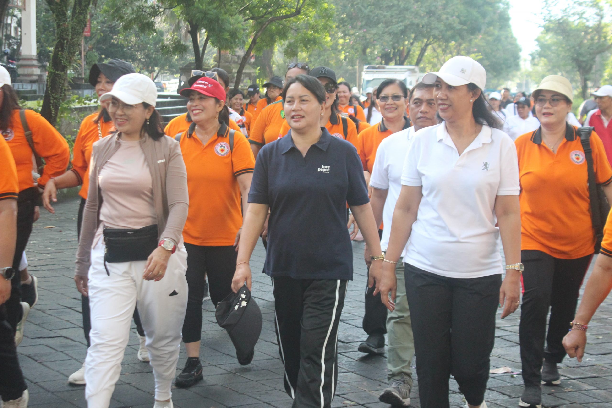 Balipustakanews.com, Badung – Ketua Badan Kerja Sama Organisasi Wanita (BKOW) Provinsi Bali, Ny. Seniasih Giri Prasta, secara resmi membuka kegiatan Fun Walk dalam rangka Hari Ulang Tahun ke-74 Ikatan Bidan Indonesia (IBI). Acara berlangsung di Lapangan Puspem Badung, Kabupaten Badung, pada Minggu (8/6) pagi, dan ditandai secara simbolis dengan pelepasan burung merpati.