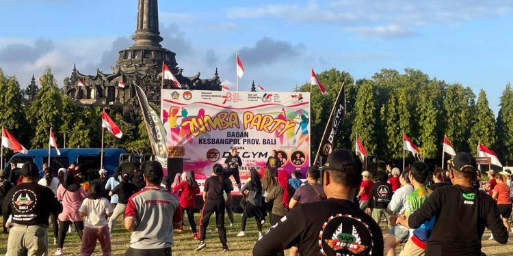 BALIPUSTAKANEWS, DENPASAR – Berkolaborasi dengan De Gym Platinum Renon, Badan Kesatuan Bangsa dan Politik Provinsi Bali melaksanakan kegiatan Zumba Party bertempat di Lapangan Niti Mandala Renon Denpasar, Minggu, 6 Agustus 2023.