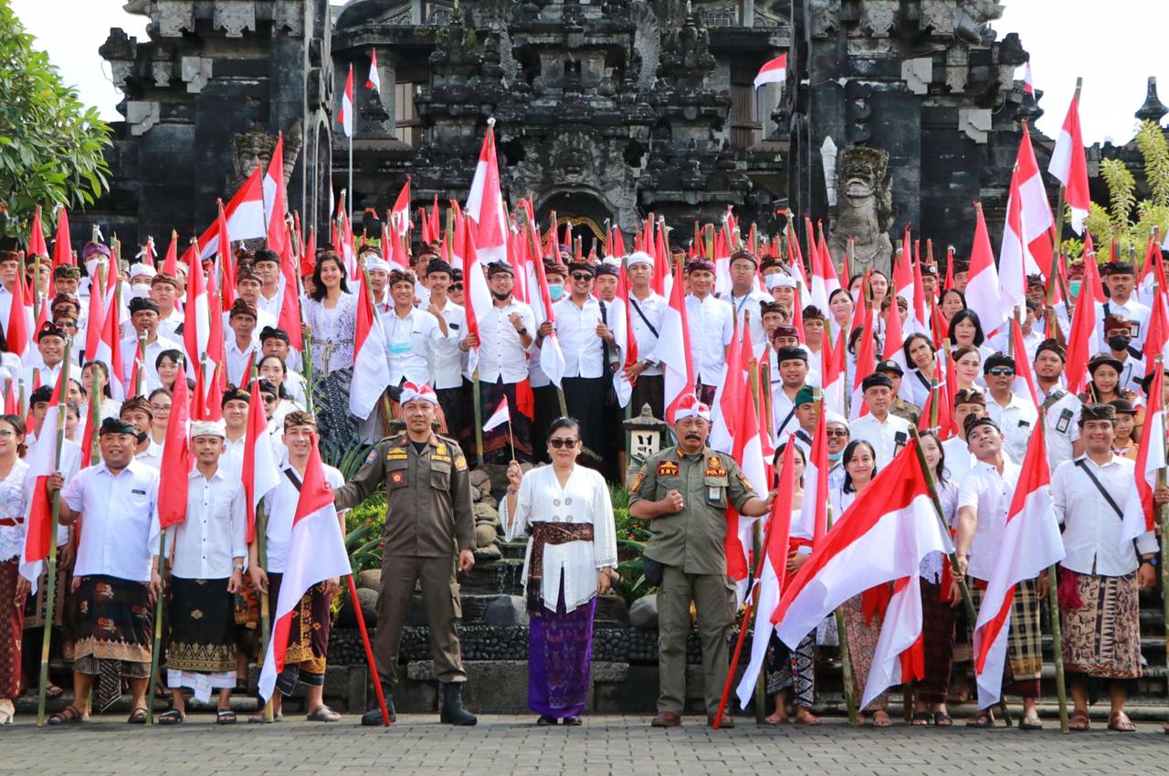 Gebyar Merah Putih di MPRB dilanjutkan gerakan pembagian 10 juta bendera yang diawali secara simbolis oleh Ny. Putri Koster dengan memasangkan bendera pada sepeda motor milik pengendara yang melintas di Jalan Raya Puputan. Bendera yang dibagikan merupakan sumbangan dari seluruh OPD Pemprov Bali.(CF/HpB)