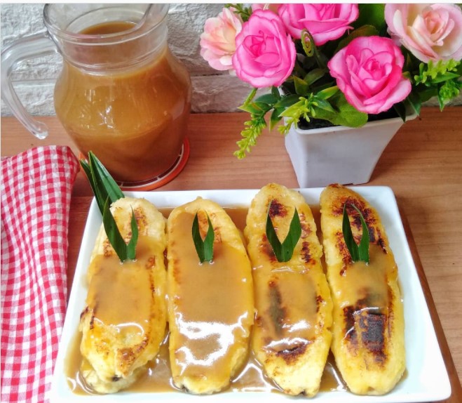 Terakhir, tata pisang di atas piring. Siram dengan kuah kentalnya.