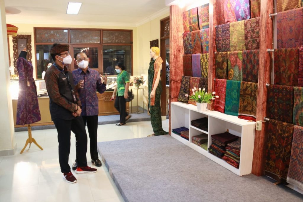 Setiba di lokasi pameran, Menparekraf Sandiaga Uno beserta rombongan langsung diarahkan meninjau stand di bawah Gedung Ksirarnawa yang memamerkan produk kerajinan tenun khas Bali seperti songket dan endek, serta beragam aksesoris berbahan emas atau perak. Di sela-sela peninjauan, Ketua Dekranasda Ny Putri Koster menerangkan bahwa pameran yang digagasnya ini bertujuan membantu pelaku industri kecil dan menengah (IKM) Bali Bangkit dari keterpurukan karena lesunya penjualan akibat pandemi Covid-19. Lebih dari itu, pemeran ini juga menjadi bagian dari upaya pelestarian kerajinan khas Bali seperti jenis tenun songket dan endek yang belakangan banyak ditiru dan diproduksi secara massal menggunakan mesin atau dibordir.