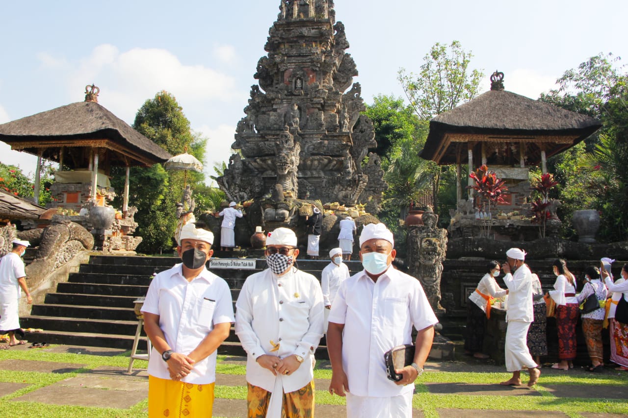Dalam kesempatan tersebut, turut juga hadir melaksanakan persembahyangan Ketua BKOW Prov Bali Ny. Tjok Putri Hariyani Ardhana Sukawati, Wakil Bupati Jembrana I Gede Ngurah Patriana Krisna, serta jajaran pemedek dari Pemprov Bali dan Pemkab Jembrana.