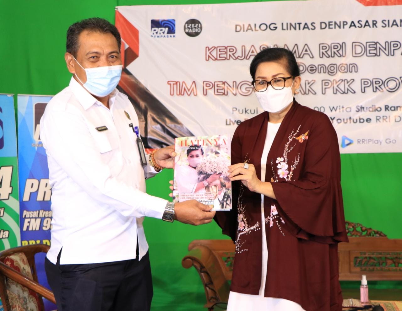 BALIPUSTAKANEWS,DENPASAR – Ketua Tim Penggerak PKK Provinsi Bali Ny Putri Koster tidak bosan-bosan mengingatkan masyarakat untuk berperan serta mencegah penyebaran Covid-19. Hal tersebut disampaikannya saat menjadi narasumber dalam dialog interaktif di RRI Denpasar, Denpasar, Senin (7/6/2021).