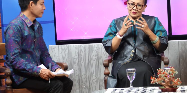 BALIPUSTAKANEWS, DENPASAR – Ketua TP PKK Provinsi Bali Ny. Putri Koster bersama Prof. I Made Damriyasa selaku Koordinator Kelompok Ahli Pembangunan dan Rektor Institut Seni Indonesia (ISI) Denpasar Prof. Wayan Adnyana menjadi narasumber dalam acara Perempuan Bali Bicara di Studio Bali TV, Jumat (3/2)