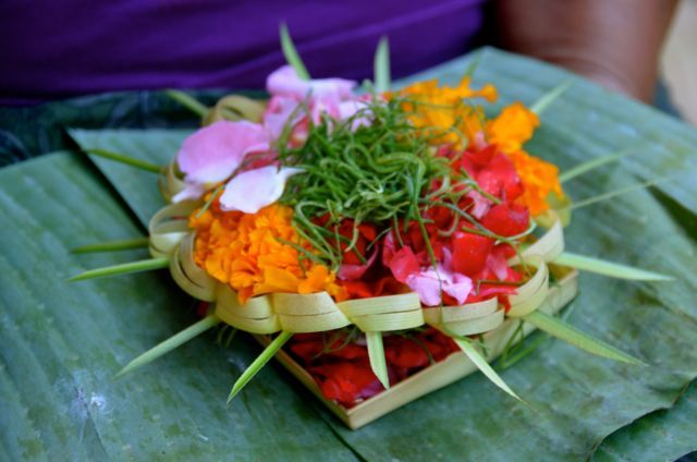 Oleh karena itu sarana kelengkapan upakara dalam aspek relegi pertamanan tradisional di Bali, sarana upakara terdiri dari air, daun, bunga, buah dan api. Selain unsur api dan air yang selebihnya merupakan unsur tanaman.