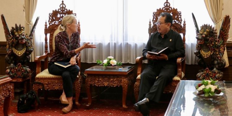 BALIPUSTAKANEWS, DENPASAR – Wakil Gubernur Bali Prof. Tjokorda Oka Artha Ardana Sukawati didampingi Kepala Pelaksana BPBD Provinsi Bali, I Made Rentin menerima audiensi dari Team Leader SIAP SIAGA, Lucy Dickinson, di Ruang Tamu Wakil Gubernur Bali, Kantor Gubernur Bali, Denpasar, Senin (21/8).
