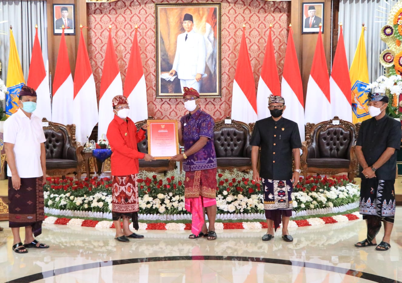 “Untuk itu hari ini saya akan memberikan sejumlah penghargaan, yaitu Adi Sewaka Nugraha kepada para pengabdi seni, hadiah bagi para Pemenang Lomba selama PKB 2021, Serifikat Patram Budaya kepada sekaa/sanggar/yayasan seni, serta Serifikat Warisan Budaya Bali yang telah ditetapkan menjadi Warisan Budaya Tak Benda Nasional. Saya mengucapkan selamat kepada para penerima penghargaan dan sertifikat, semoga dapat memacu semangat untuk terus berkarya”, pungkasnya.
