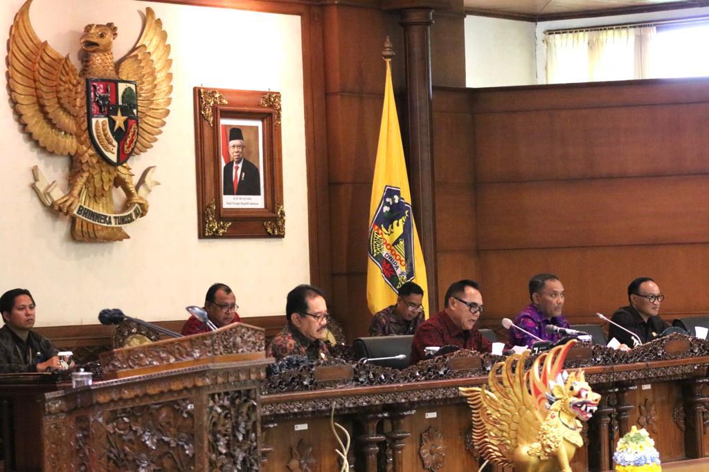 BALIPUSTAKANEWS, DENPASAR – Gubernur Bali Wayan Koster yang diwakili oleh Wakil Gubernur Bali Tjokorda Oka Artha Ardhana Sukawati mengikuti Rapat Paripurna Ke-11 DPRD Bali masa Persidangan I Tahun 2023, terkait Raperda Provinsi Bali tentang Penyelenggaraan Ketertiban Umum, Ketenteraman Masyarakat, dan Pelindungan Masyarakat; dan Raperda Provinsi Bali tentang Perubahan Atas Peraturan Daerah Nomor 6 Tahun 2014 tentang Perlindungan Anak, bertempat di Gedung DPRD Provinsi Bali-Denpasar, pada Senin (10/4).