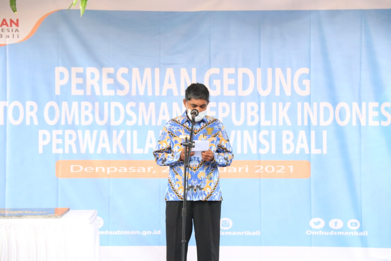 Peresmian Gedung ORI Perwakilan Provinsi Bali ditandai penandatanganan prasasti dan pemotongan pita oleh Gubernur Wayan Koster didampingi Wakil Gubernur Bali Tjokorda Oka Artha Ardhana Sukawati (Cok Ace), Wakil Ketua Ombudsman RI Lely Pelitasari Soebekty, Ketua ORI Perwakilan Provinsi Bali Umar Ibnu Alkhatab dan Sekda Dewa Made Indra. Peresmian Gedung ORI Perwakilan Bali dihadiri pula oleh Wakil Walikota Denpasar I GN Jaya Negara, Kepala BI Perwakilan Provinsi Bali Trisno Nugroho, Wakil Ketua DPRD Bali dan sejumlah pimpinan OPD Pemprov Bali.