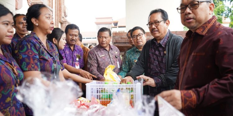 BALIPUSTAKANEWS, DENPASAR – Menindak lanjuti tingkat inflasi Bali yang berada di tingkat 6,2 atau berada diatas inflasi nasional (5,1) year on year-nya, Wakil Gubernur Bali Prof. Tjok Oka Sukawati di dampingi Kepala Perwakilan Bank Indonesia Provinsi Bali Trisno Nugroho dan Wakil Walikota Denpasar Kadek Agus Arya Wibawa serta sejumlah Kepala OPD melaksanakan operasi pasar atau sidak harga bahan kebutuhan pokok sehari-hari, mulai dari harga cabai, harga tomat, harga minyak, harga bawang merah, harga bawang putih, harga ayam dan harga beras. Dari pantauan harga cabai yang bertengger di angka 45 hingga 50 ribu per kilogram menjadi faktor inflasi utama untuk Bali. Hal ini disampaikan Wagub Cok Ace saat operasi/ sidak pasar, di Pasar Badung-Denpasar, Selasa (31/1).