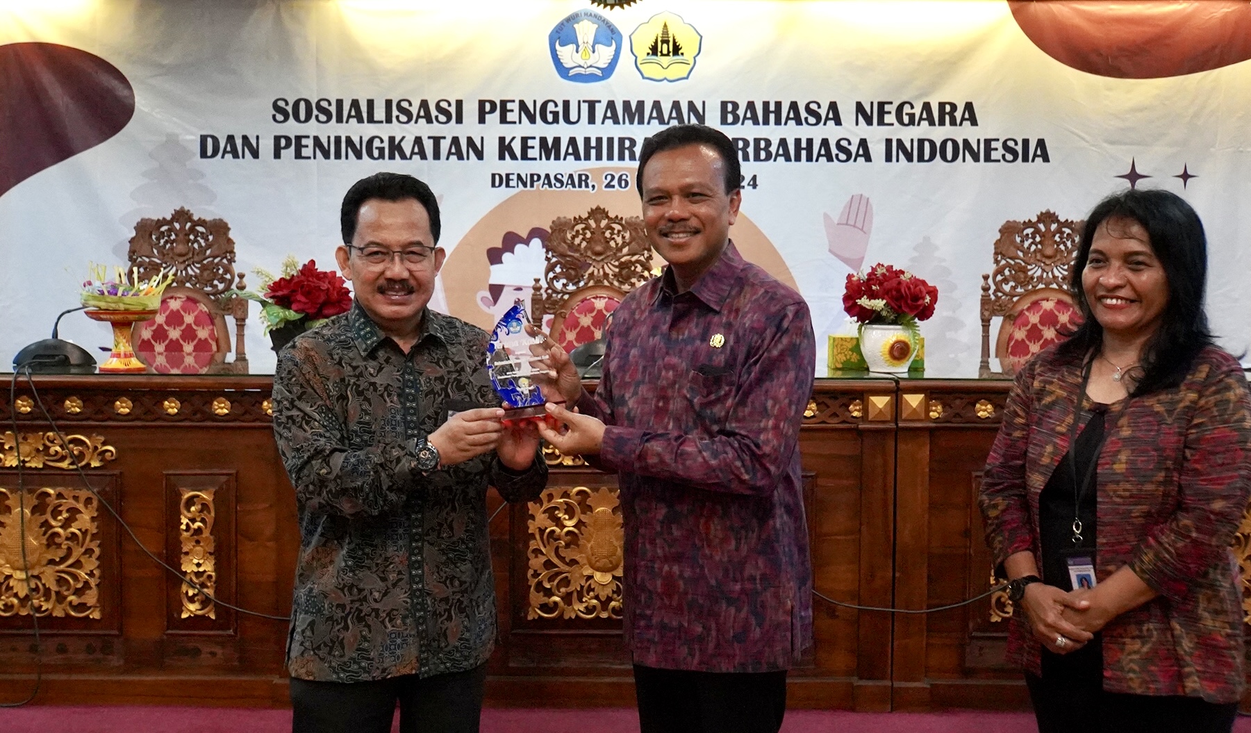 Balipustakanews.com, Denpasar – Sekretaris Daerah Provinsi Bali, Dewa Made Indra membuka secara resmi kegiatan Sosialisasi Pengutamaan Bahasa Negara dan Peningkatan Kemahiran Berbahasa Indonesia, di Ruang Cempaka, Kantor Bappeda Provinsi Bali, Selasa (26/3).
