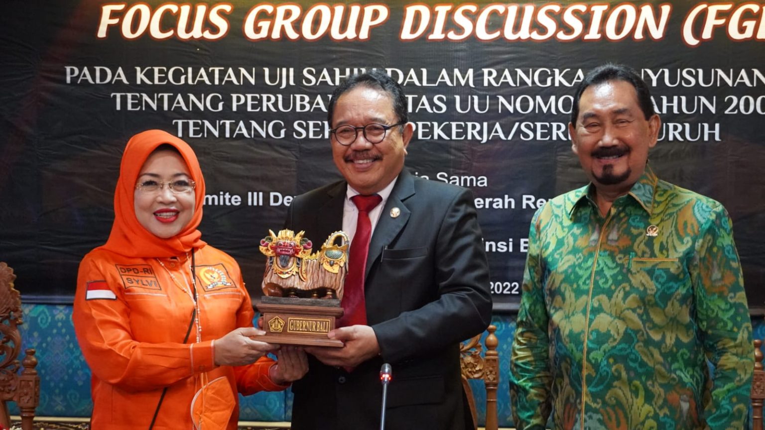 BALIPUSTAKANEWS,DENPASAR – Wakil Gubernur Bali Prof. Tjokorda Oka Artha Ardhana Sukawati (Cok Ace) menghadiri Focus Group Discussion (FGD) Uji Sahih RUU Tentang Perubahan UU Nomor 21 tahun 2000 Tentang Serikat Pekerja/Serikat Buruh yang digelar Komite III Dewan Perwakilan Daerah (DPD) RI di Ruang Pertemuan Kantor Bappeda Provinsi Bali pada Soma Wage Wuku Medangsia (Senin, 27 Juni 2022).