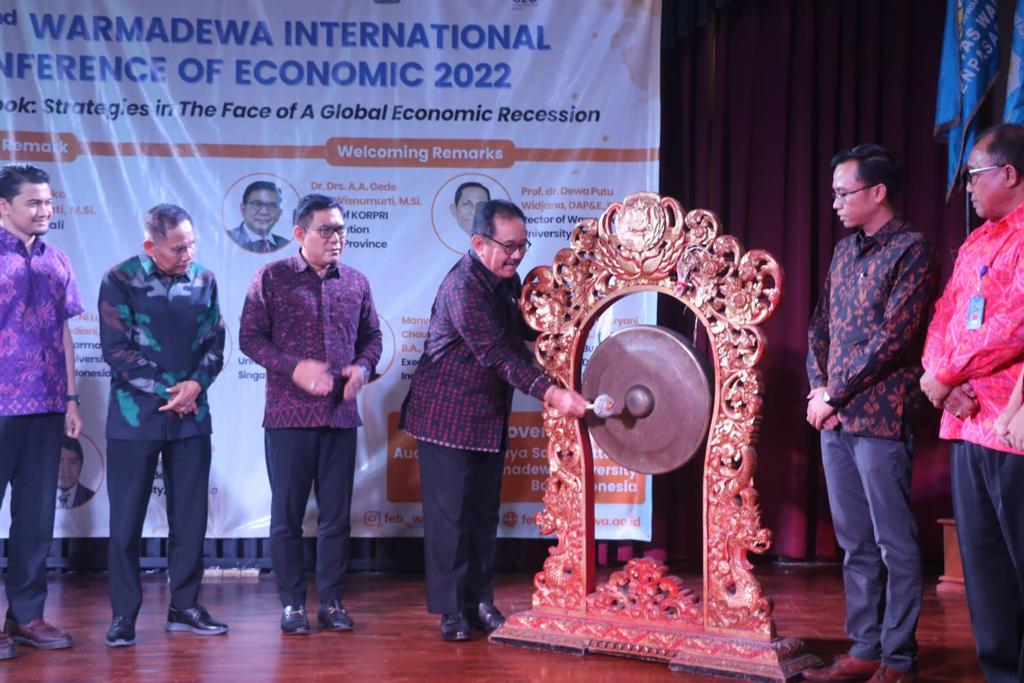 Sementara itu Rektor Universitas Warmadewa menyampaikan bahwa kegiatan seminar yang digagas oleh Fakultas Ekonomi dan Bisnis Unwar ini sebagai merupakan rangkaian dari peringatan HUTnya, juga sangat dirasa penting dalam menghadapi perkembangan ekonomi saat ini. Ekonomi global yang berjalan sangat dinamis merupakan suatu hal yang harus menjadi perhatian kita bersama, terlebih dampak yang ditimbulkan oleh perang antar Ukraina dan Rusia, yang akan berdampak pada krisis pangan dan isu resesi tidak bisa dielakan. Untuk itu, diharapkan Seminar Internasioanal yang menghadirkan beberapa narasumber yang expert dalam bidangnya, dapat mememberikan kita pencerahan dalam menghadapi ekonomi global.