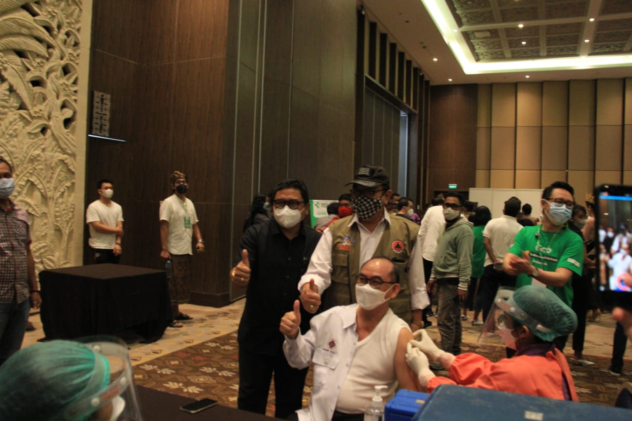 Sementara itu, Menparekraf RI Sandiaga Uno menyampaikan bahwasannya pihaknya mengapresiasi serta berterima kasih bagi seluruh pihak yang telah berdedikasi untuk melaksanakan kegiatan vaksinasi pada siang hari ini. Pihaknya berharap kegiatan vaksinasi bagi pelaku pariwisata ini dapat memberikan kepercayaan bagi dunia International akan keseriusan kita dalam upaya menekan kasus Covid 19. Disamping itu upaya upaya lainnya seperti melakukan 3 T ( tracing, testing, treatment) secara masif serta mendorong penerapan Free Covid Coridor bagi para wisatawan terus kita lakukan. ” Kita lihat tadi antusiasme pelaku pariwisata untuk vaksin sangat tinggi dan ini menunjukkan komitmen kita bersama untuk segera mengatasi pandemi ini, secara bertahap dan berkelanjutan ini terus kita lakukan sehingga dengan kebersamaan, kita akan bisa mengatasi pandemi ini,” tuturnya.