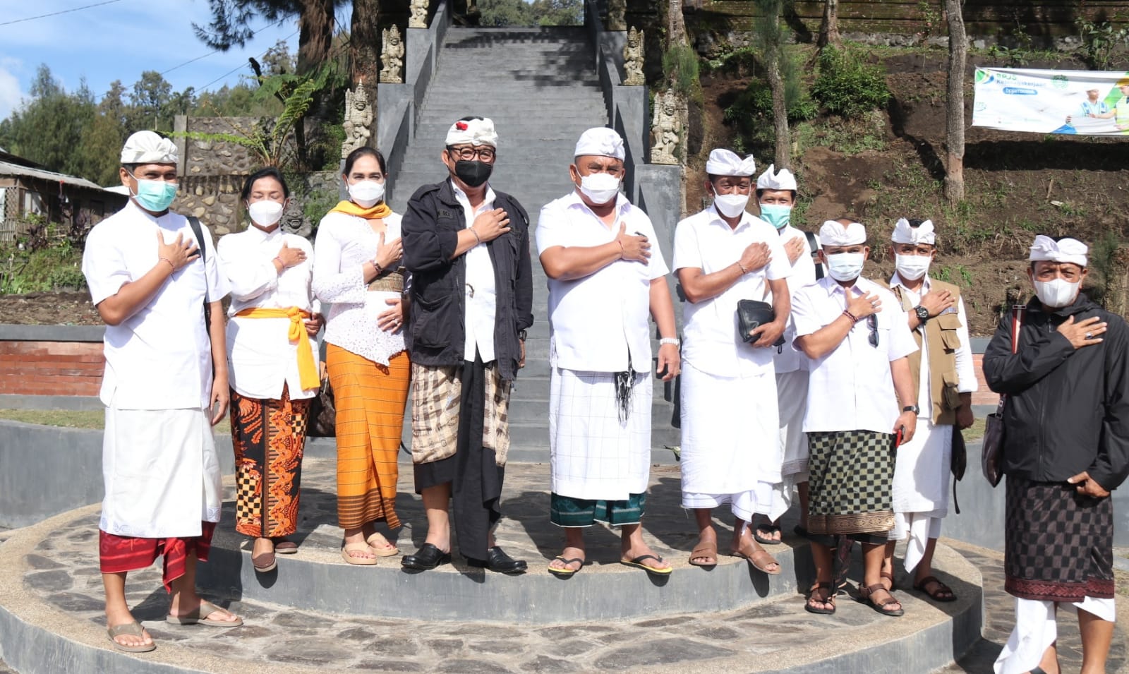 “Baru bulan Juni lalu Kami bertemu dengan Pak Bupati saat piodalan, Kami coba buatkan sket wantilannya, dan jalan menuju jeroan berupa undagan, dirasa cocok, dan seperti terlihat sekarang, sudah terbangun. Sangat responsif, Kami sampaikan apresiasi,” ungkapnya sembari melanjutkan persembahyangan.