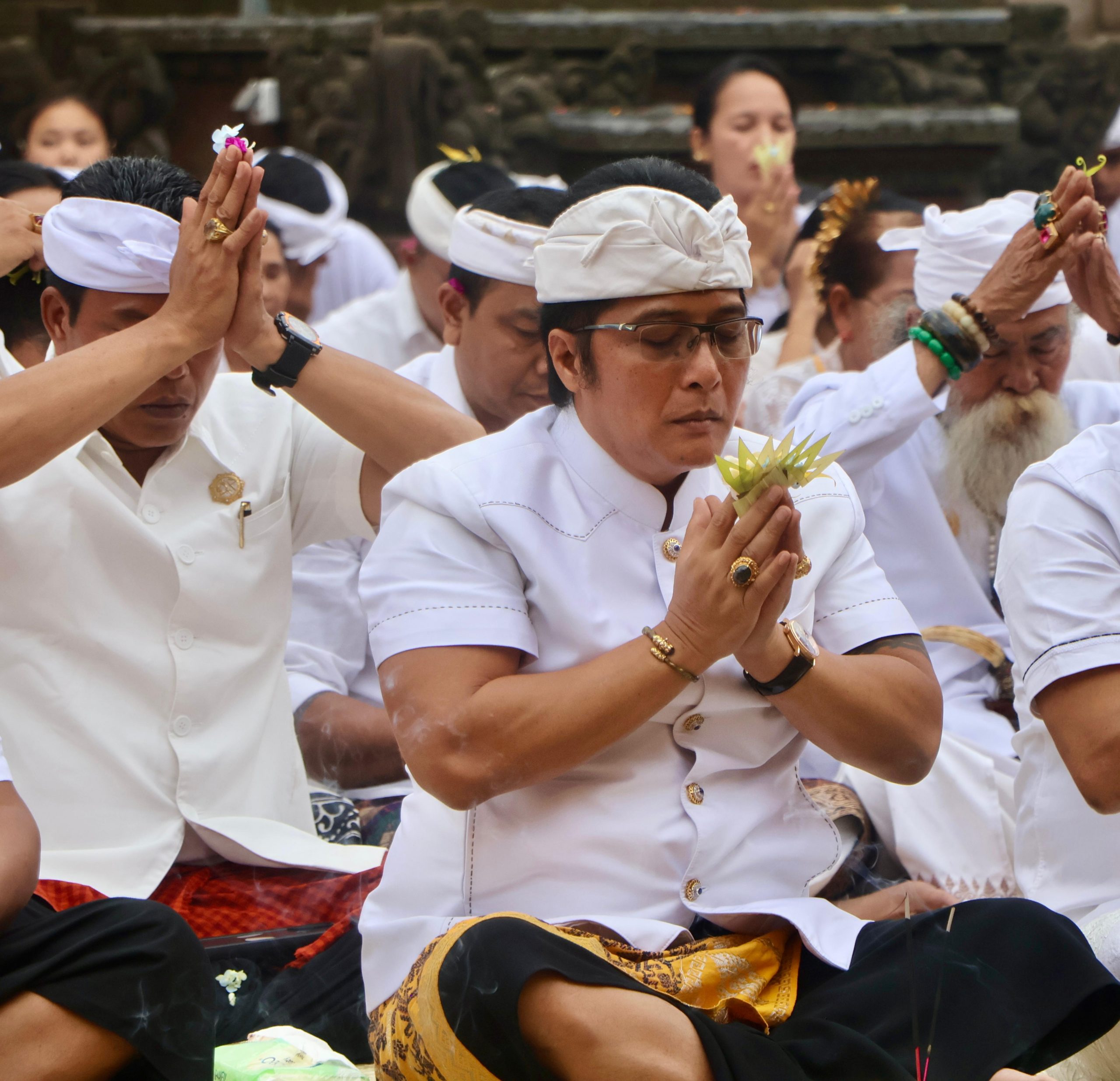 “Ngiring ngrastiti bhakti nunas wara nugraha Ida Sasuhunan iriki, agar kita semua dimudahkan dalam melaksanakan swadharma dalam kehidupan,” ujarnya.