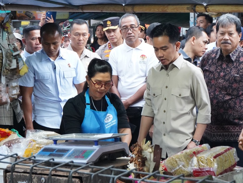 Selama kunjungannya, Gibran menyapa dan berdialog langsung dengan para pedagang pasar, mengecek harga sejumlah bahan pokok seperti bawang merah, bawang putih dan cabai. Ia juga sempat membeli 2 kilogram bawang merah dan 2 kilogram bawang putih.